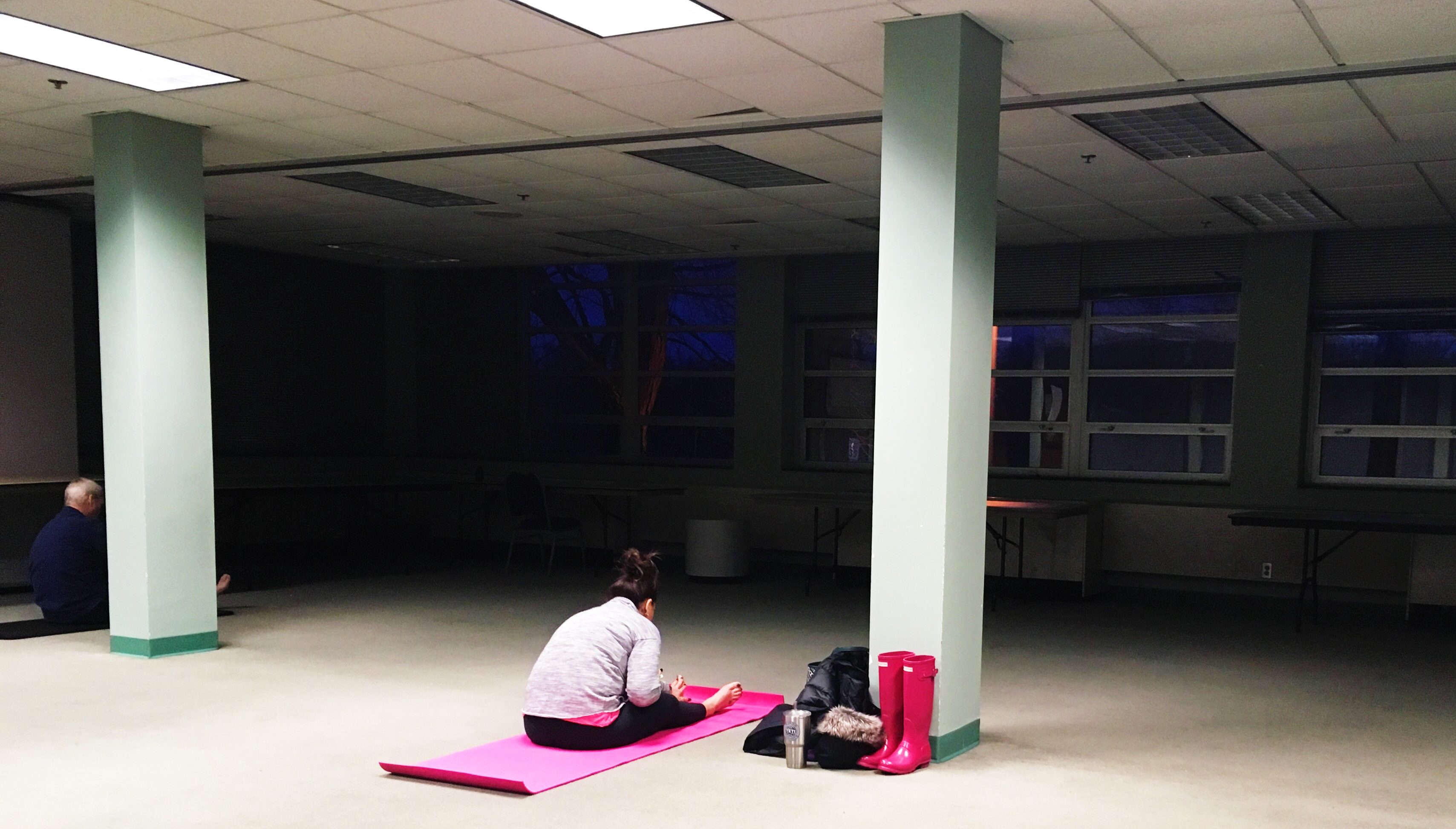 These classes do not take place in a fancy yoga studio with freshly polished hardwoods and soft lighting. They are held in a back room of the Jewish Community Center under blinking fluorescents. The ground beneath our feet is covered in decades-old, green-gray carpet. Teachers play music on their phones pushed up to full volume, or, occasionally, on a bluetooth speaker. The median age in the room has to hover somewhere between 40 and 50. There is no up-charge for the classes. I pay a normal monthly membership to the JCC—and even if I only went for yoga, it would amount to less than $4 per class.